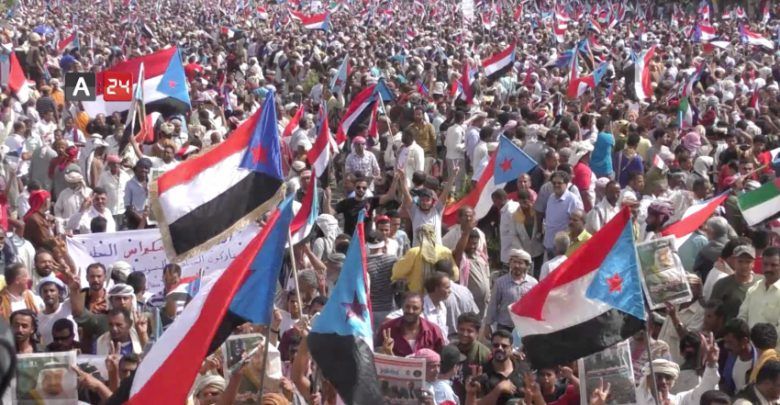 واليومَ؛ وشعبُنا الجنوبيُّ العربيُّ؛ واقفٌ من أقصى المهرة إلى باب المندب؛ في ساحات الاعتصام؛ يرسل رسالته إلى المجتمع الدولي كله؛ “ممهورة بدماء خيرة أبنائه وشبابه الذين رضعوا حُبَّ هذه الأرض؛” مطالبََا الاعتراف باستقلال دولته؛ دولة الجنوب العربي. لتكون حزام الأمان؛ وشريكََا لدول الإقليم والعالم؛ في حماية الممرات والملاحة البحرية؛ من “مضيق هرمز إلى باب المندب” من الإرهاب والقرصنة التي تهدد مصالح العالم في المحيط الهندي وبحر العرب ومدخل البحر الأحمر..