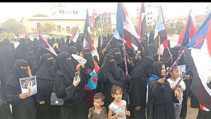 حشد نسائي في ساحة كلية ردفان للمطالبة بإعلان دولة الجنوب العربي