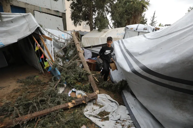 عاصفة رملية تهز خيام نازحي غزة وتضاعف معاناتهم