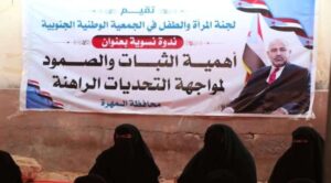 نفذت لجنة المرأة والطفل في الجمعية الوطنية الجنوبية، مساء الأربعاء، ندوة توعوية نسوية حول أهمية الثبات والصمود في مواجهة التحديات الراهنة، وتعزيز دور المرأة الجنوبية في المرحلة الحالية.
