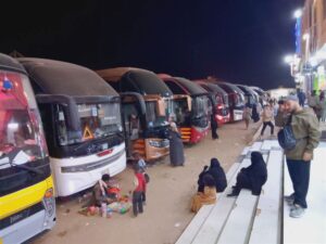 وقال مسافرون إن مئات الأسر يقضون ليلهم في العراء، بينهم نساء وأطفال، دون مأوى أو خدمات أساسية، نتيجة قلة أماكن الإيواء وغياب الترتيبات اللازمة لاستيعاب الأعداد المتزايدة.