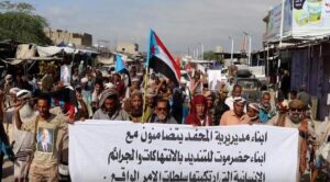 مسيرة جماهيرية بالمحفد تندد بأحداث المكلا وتؤكد التضامن مع أبناء حضرموت