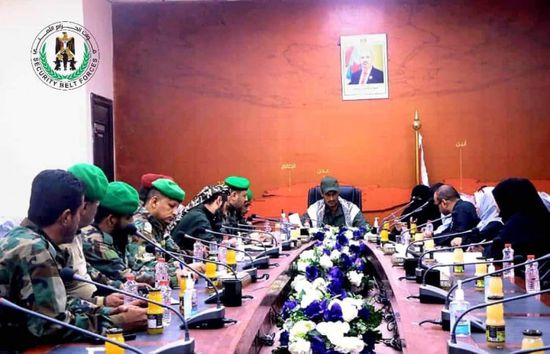 رحب العميد جلال الربيعي، أركان قوات الحزام الأمني، قائد الحزام في العاصمة عدن، صباح اليوم الأربعاء، بأعضاء اللجنة الفنية المشتركة لمنع تجنيد الأطفال بالشراكة مع يونيسف، في اجتماع عقده بالقيادة العامة بمعسكر الشعب.