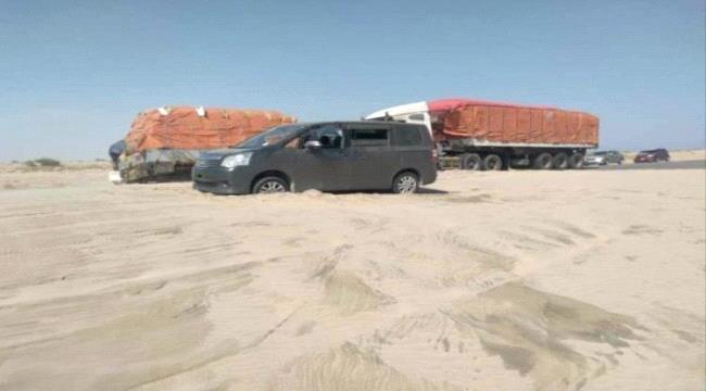 رمال زاحفة تعزل عسيلان عن عتق وتهدد حياة المسافرين