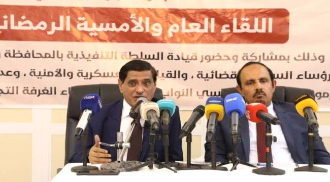 ورفع محافظ حضرموت الأستاذ مبخوت مبارك بن ماضي، التهاني للحضور ولأبناء حضرموت كافة بمناسبة خواتم شهر رمضان الكريم، مستعرضًا جهود السلطة المحلية في توحيد الصف وجمع الكلمة، وتحسين الخدمات ودعم التنمية وسط صعوبات توقف تصدير النفط وتراجع الايرادات وارتفاع العملة، التي جاءت كافرازات للحرب التي انعكست على أحوال المواطنين وأوضاعهم.