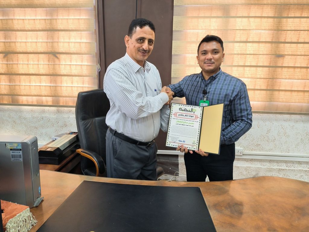 من جانبه شكر الاستاذ محسن صالح قحطان مؤسسة التنمية للصحافة والإعلام لهذه اللفتة والمبادرة الطيبة متمنيا لهم التوفيق والنجاح في عملهم ..
