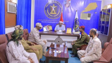رئيس تنفيذية انتقالي وادي وصحراء حضرموت يلتقي قائد كتيبة النخبة مشاة المستقلة بمعسكر العند