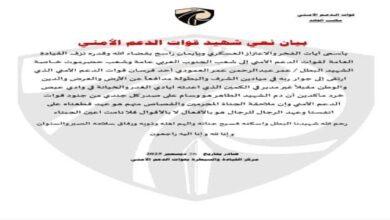 أعلنت قوات الدعم الأمني في النخبة الحضرمية، اليوم الجمعة، استشهاد البطل عمر عبد الرحمن عمر العمودي أحد فرسان قوات الدعم…