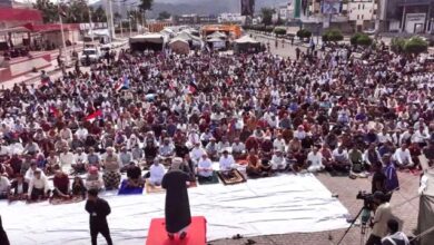 حشود غفيرة تؤدي صلاة الجمعة في ساحة الاعتصام بالعاصمة عدن تحت شعار “الثبات والتمكين”