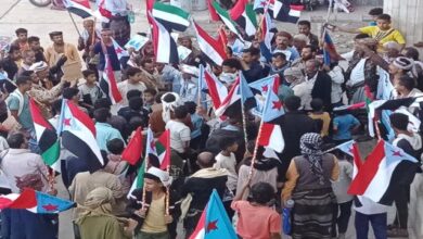 حشود جماهيرية في الحوطة تؤيد البيان السياسي والإعلان الدستوري وتندد بالغارات السعودية