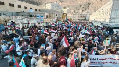 مسيرة جماهيرية حاشدة في المكلا تجدد التفويض للرئيس القائد عيدروس الزُبيدي وترفض ما يُسمى بيان حل المجلس الانتقالي