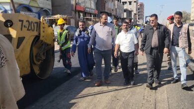 مدير عام المنصورة يتفقد العمل في فرش الطبقة الأسفلتية بمشروع إعادة تأهيل شارع التقنية – تقاطع بئر أحمد